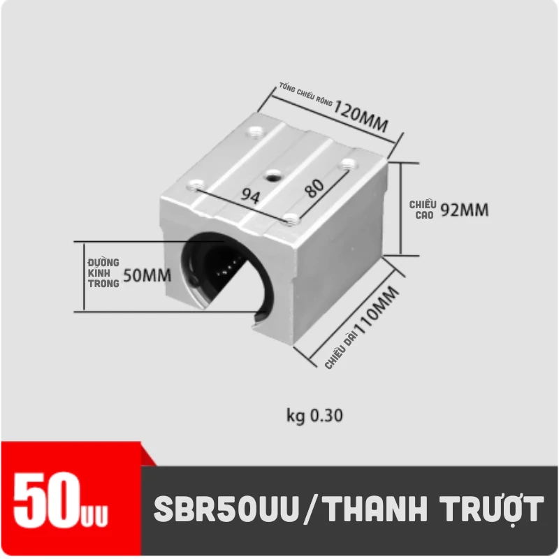Con trượt tròn có đế thân ngắn SBR50UU (Bi trượt tròn có đế)