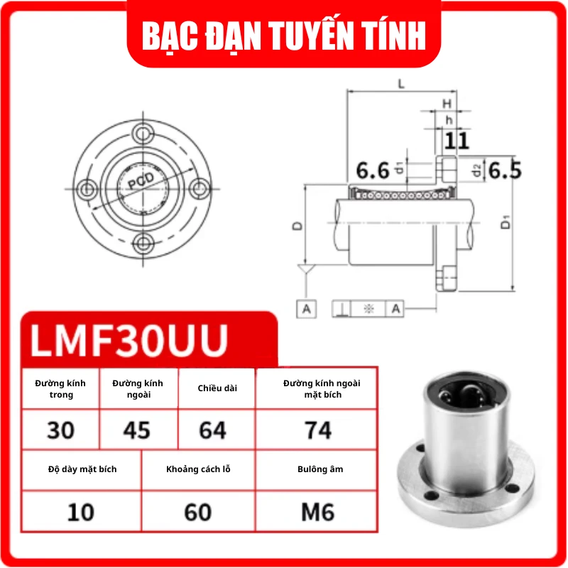 Con trượt tròn mặt bích tròn thân ngắn LMF30UU (Bi trượt tròn)
