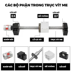 - Giảm Rung Động Hiệu Quả: Trang bị vòng bi chất lượng cao, gối đỡ BF hấp thụ rung động và giảm va đập, đảm bảo chuyển động mượt mà và ổn định cho trục vít me.