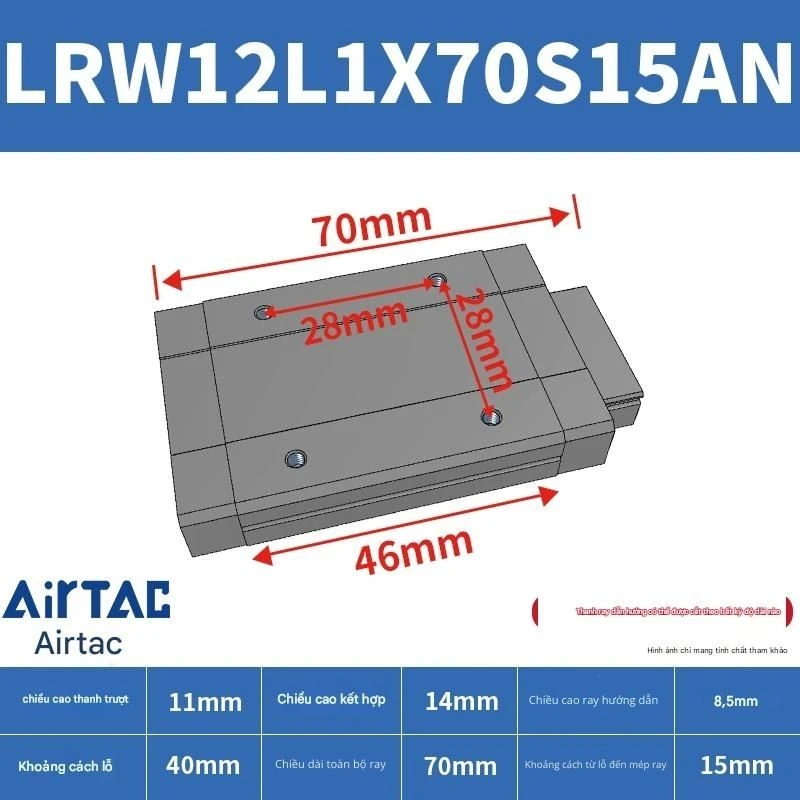 Ray trượt tuyến tính mini bản rộng LRW12L1X70S15AN