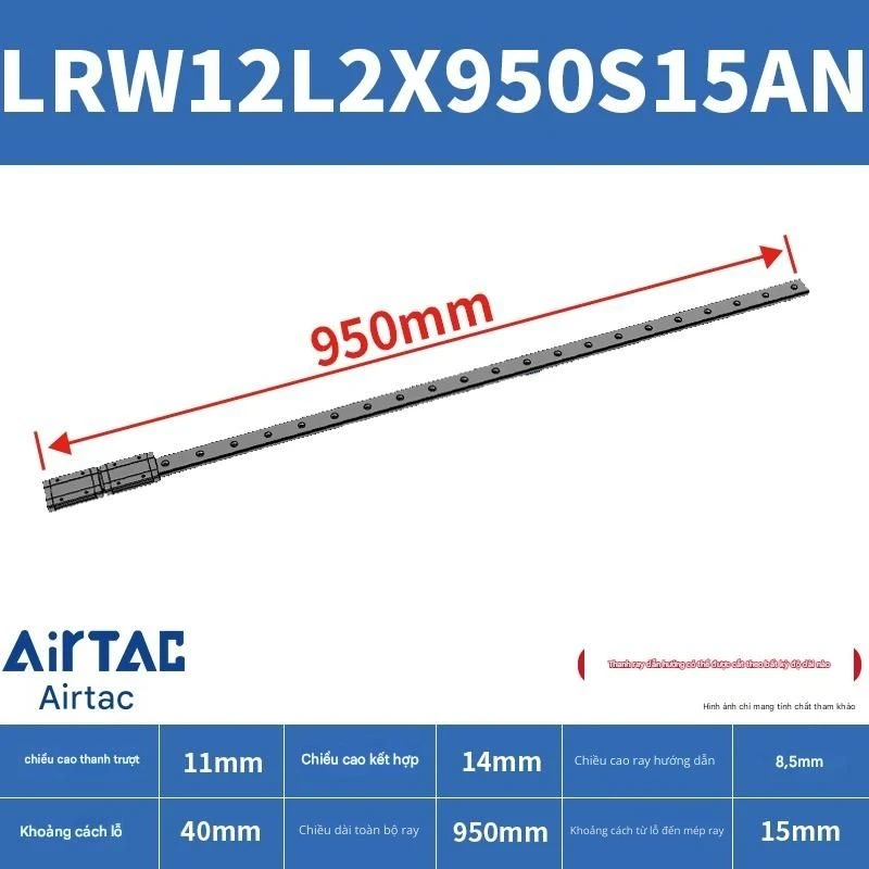 Ray trượt tuyến tính mini bản rộng LRW12L2X950S15AN
