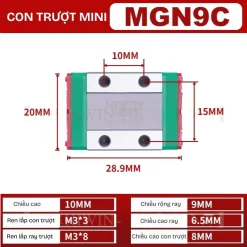 - Khả Năng Chịu Tải: Dù kích thước nhỏ, con trượt MGN có khả năng chịu tải từ 1300N đến 6000N, đáp ứng các ứng dụng nhẹ.