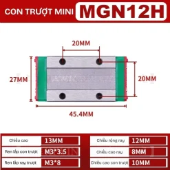 - Khả Năng Chịu Tải: Dù kích thước nhỏ, con trượt MGN có khả năng chịu tải từ 1300N đến 6000N, đáp ứng các ứng dụng nhẹ.