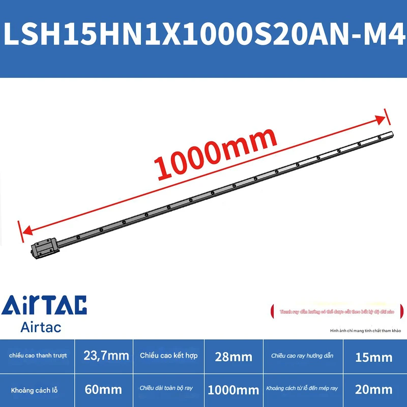 Ray trượt vuông tiêu chuẩn LSH15HN1X1000S20AN-M4